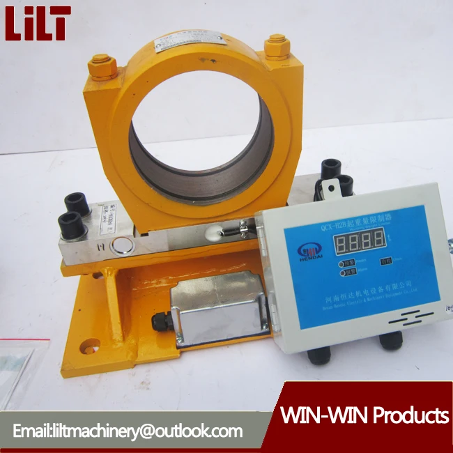 The sensor output signal is amplified by the two integrated operational amplifier, the amplified signal is fed to a four comparator, wherein three separate comparator comparison with different reference voltages, respectively, its baseline were set at 90% of the nominal value, 105%, comparator action of the pre-alarm buzzer intermittent sound, light yellow, but to control the relay does not work, it does not limit the crane lifting. When the load reaches 105% of the set point comparator action, to avoid starting shock load caused instant false overload, set a delay circuit, delay of 1-2 seconds, it is determined if the overload persists, really overloading, immediately cut off the lifting motor power, the red indicator light. Execution control relay to DC relay, the relay does not operate when normal lifting. The device control relay contacts in series in the the crane hoisting control loop, overload control relay action, lifting loop cut, cranes stop lifting job, but the job does not affect the other direction, the circuit two The group DC power supply: ± 6V for sensor and secondary instrument, ± 8V for weight digital display.