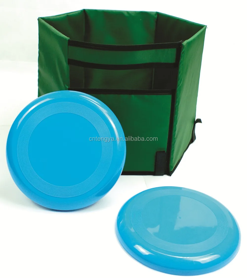 The game can be played with 2-6 players. Each team has a colored disc to throw. When 4 players are playing, one member from each team stands at away from the target and throws the disc into the target pockets to make points. Each player must throw from behind a designated line. This is the foul line. The player must not pass the foul line or the player's throw does not count.