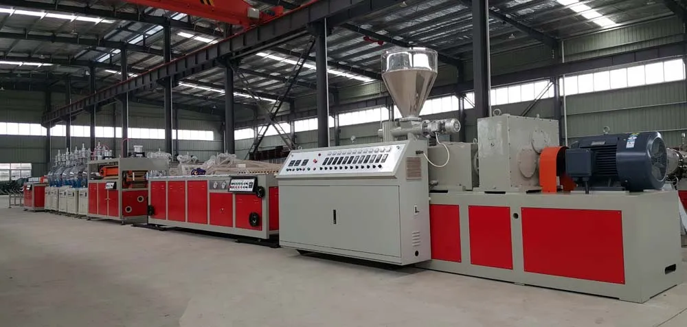 The artificial marble profile extrusion line is of compact structure and excellent performance. The screws and barrels are modified and processed from high-quality alloy steel, endowing the profile extrusion line with uniform plasticizing, stable extrusion and long service life. Structured by natural marble power to form a high-density high-fiber foundation, and covered by super abrasion-resistance PVC layer, the artificial marble profiles produced by our extrusion machinery features vivid texture, ultra-high wear resistance, and light but not smooth surface. Besides, they are non-toxic and environmentally friendly. The waste profiles can be recycled.