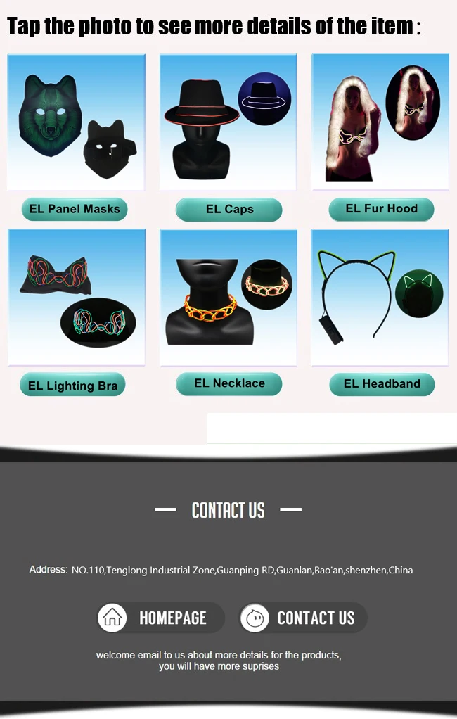 EL light up sunglasses/masks/ties/caps, and many other lighting up gifts.
