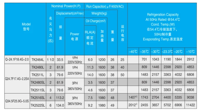 For air condition,this series is available in 1.5 to 15 HP application ranges .For commercial refrigeration,this series is available in 2 to 7 HP application ranges.And customers could select the brass connecting and thread connecting with their demands and choose the parallel connecting compressors in some models.
