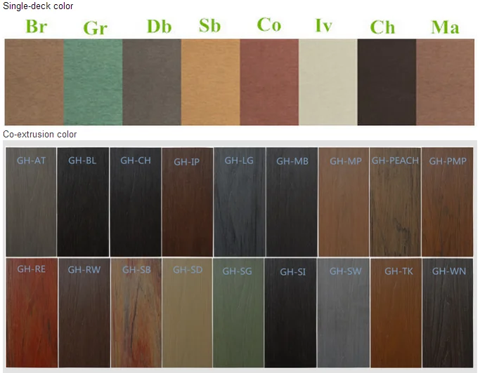 Which made of of 60%~65% natural wood fiber(professionally dry treatment),30%~35% of eco-friendly HDPE/PP/PE/PVC materials and 5%~10% chemaical additive(anti-UV agent,anti-oxidation agent,reinforcing agent,stabilizers,colorants,anti-fungus agents,coupling agent ect)