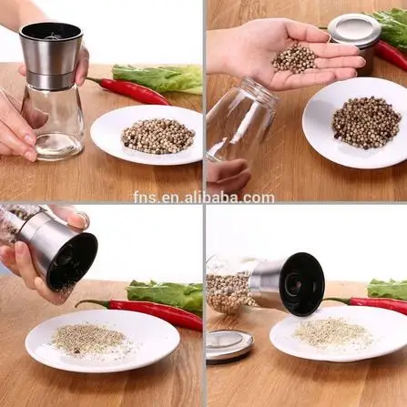 Material | Cover:Polished Stainless Steel(201). Inner part: PP. Grinder:Ceramic. Spice Container:Glass. Casing:Polished Stainless Steel(201). |