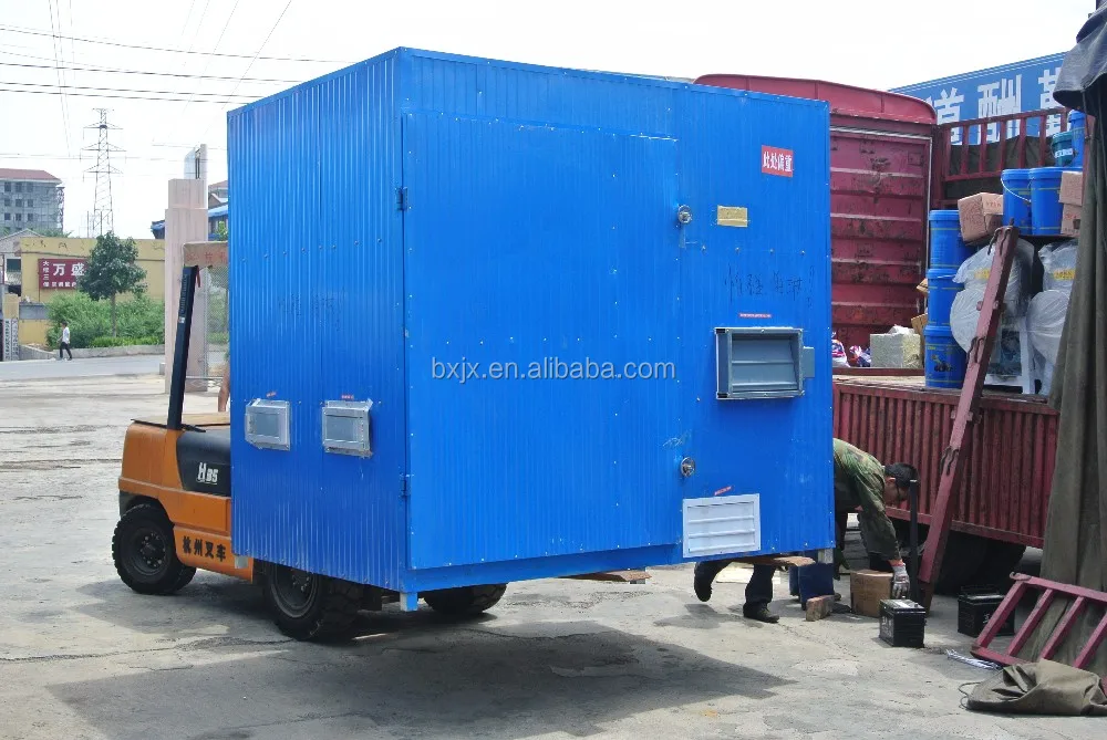 This drying oven can be installed with different heat equipment that uses coal, wood, electricity or biomass as fuel. Generally, the heating equipment respectively consumes 10 kg of coal, 15 kg of wood, 12 kg of biomass and 2-10 kW of electricity per hour.