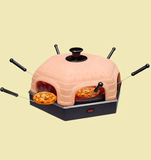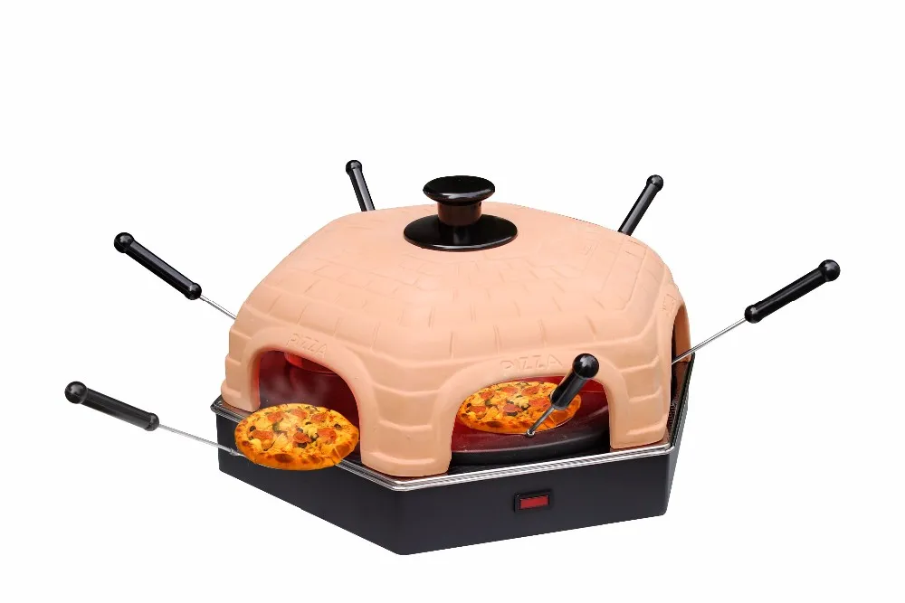 The pizza oven for 4 people gives you a feeling of an Italian pizza Restaurant setting. You can enjoy individual pizzas,calzones and your favourite desserts with your family together in your own home, very convenient,cool and fun for your whole family.With 1dough cutter and 6 spatulas, made of food grade matrial.The ceramic cover for special hand-made is easy to clean .