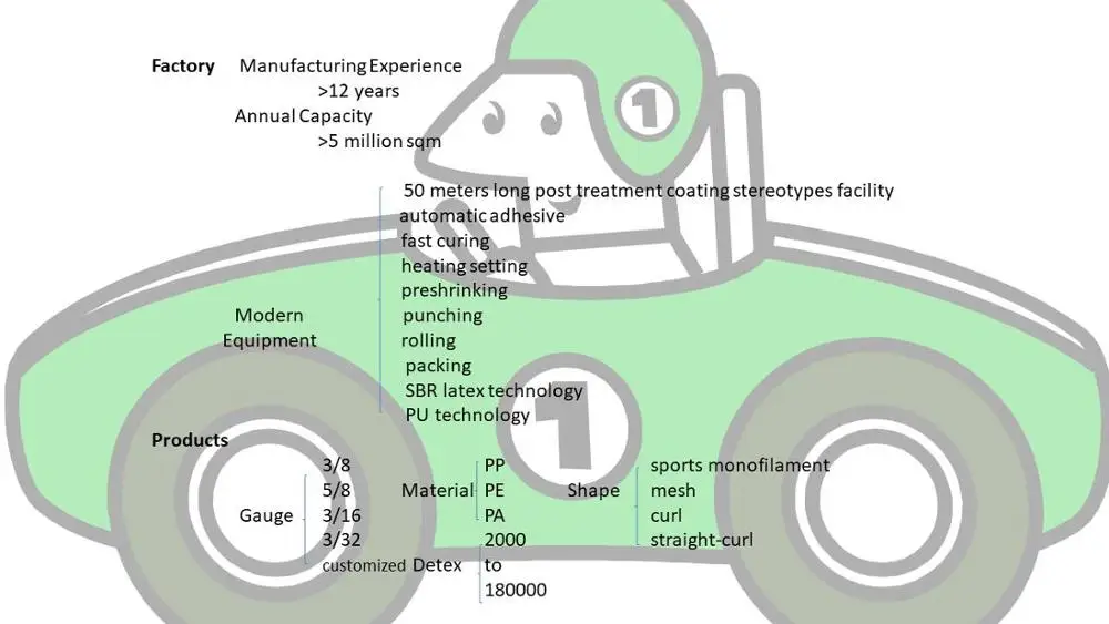 A: We are professional in artificial grass and its accessories, e.g. sweeper, glue, SBR rubber, EPDM, joint tape, shock pad. Pls feel free to consulting about your project.