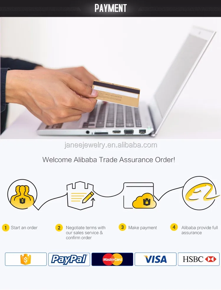 c. Accept payment by PayPal, West Union, Telegraph Transfer(Wire Transfer) and Alibaba Trade Assurance.