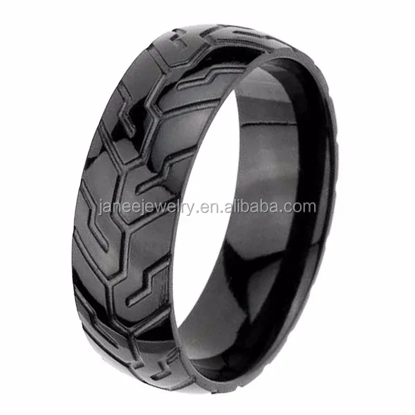 Ring Type | Wholesale 8mm Biker Mens Finger Black Zirconium Tire Ring |