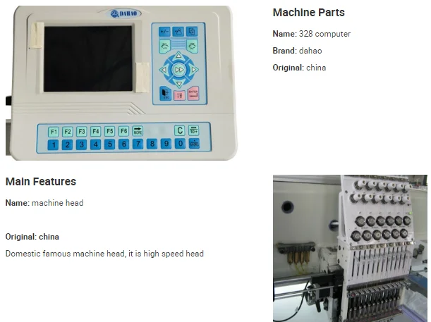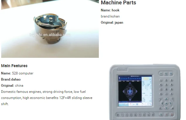 12) Emergency stop;Built-in light;Thread break detection ;Memory retention after machine shut-off