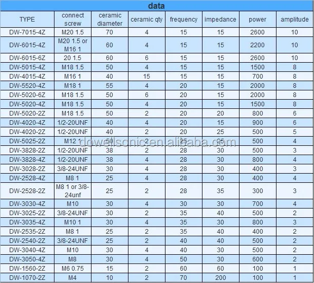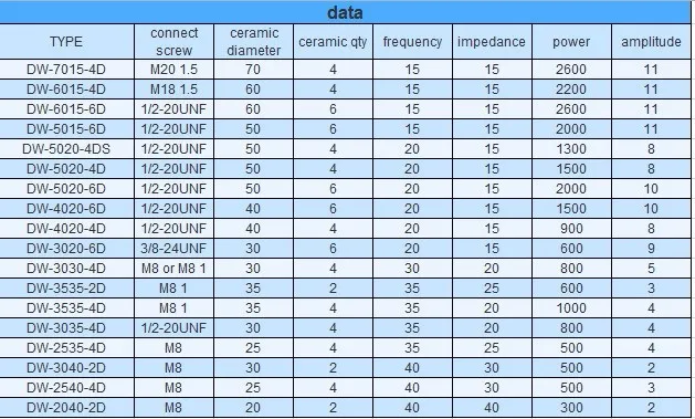 •We can produce from 15KHz-60KHz ultrasonic transducer, the power can be from 30w-4200w.