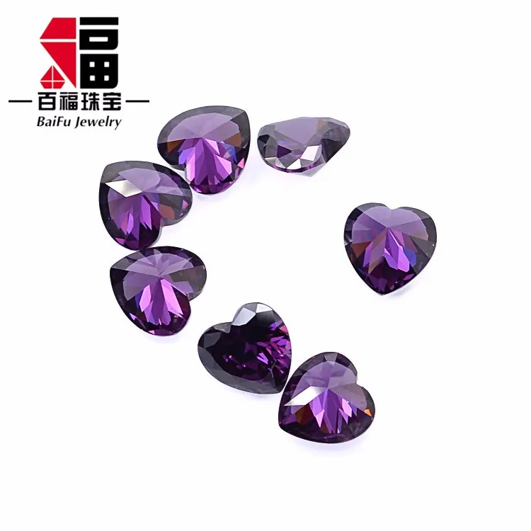 Product name: | Wholesale price Artificial Heart Cut 5A+ purple Cubic Zirconia CZ Stone for jewelry |