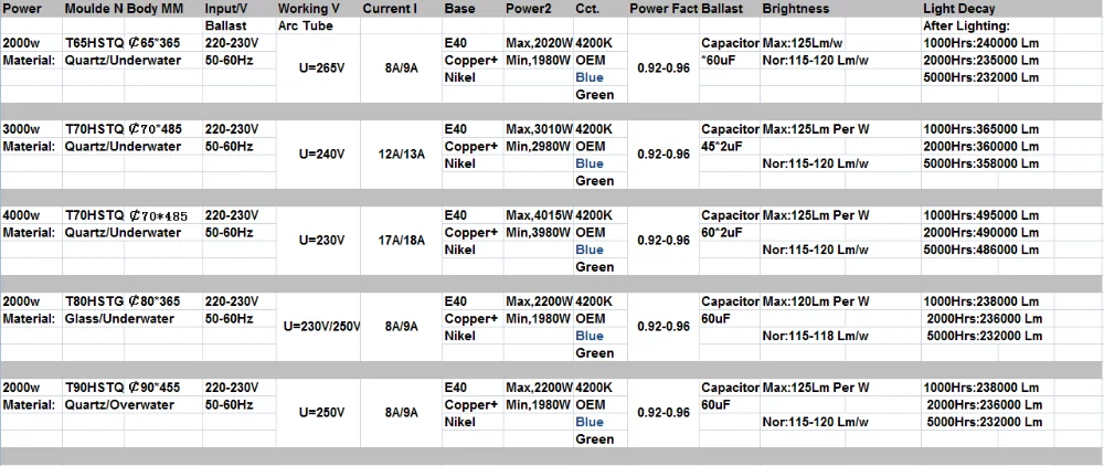 E40 600 Вт hid балласт для пара 220 в 230 В Входная трубчатая hid металлическая галогенная лампа для выращивания растений трубчатая форма