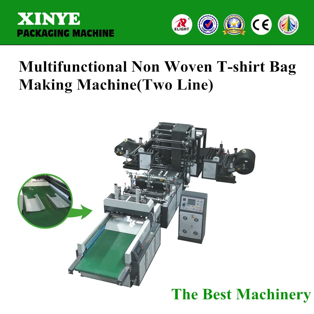 The fully automatic non woven t-shirt bag eco friendly bag making machine with plastic film or standard wooden case packaging,according to customers requirements.