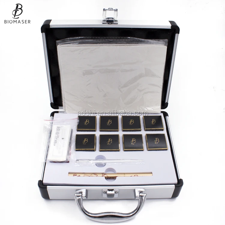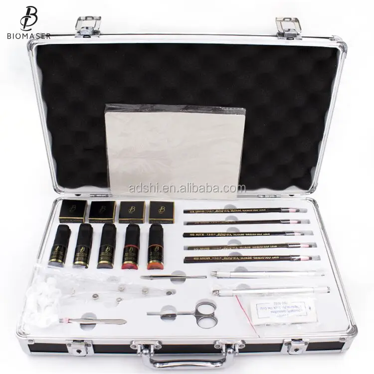 Kit Including | 4 Cream pigments 1 Microblading pen 1 Eyebrow pen 1 Professional Eyebrow Ruler 5 Microblading needle12CF 5 Microblading needle 14U 10 Misty Eyebrow Needle 5 Ring ink cup 2 Practice skin 1 Aluminum kit case | ||||||