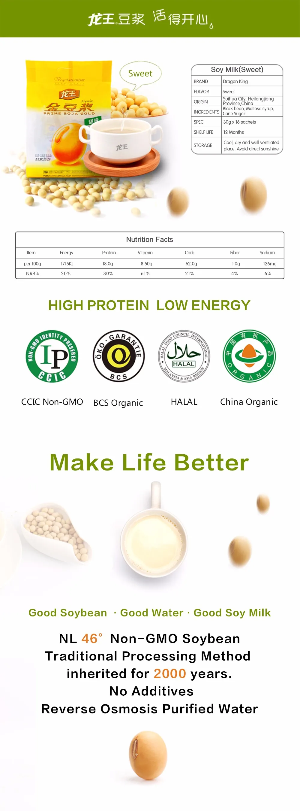 IP Non-GMO; BCS&USDA Organic; HACCP; GMP; HALAL;