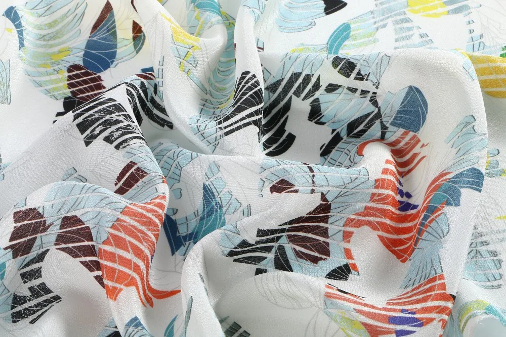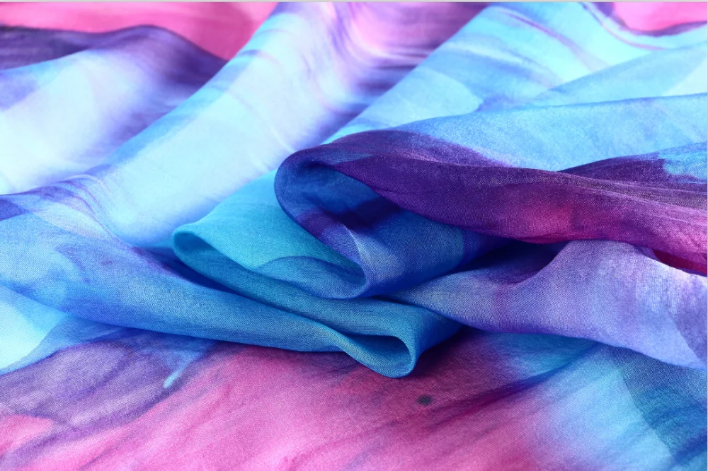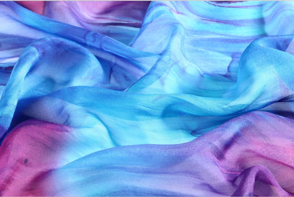 Silk chiffon, from the French word for cloth, is an elegant, sheer fabric with a soft, beautiful drape, slight stretch, and crepe-like texture. Cutting silk chiffon may also prove difficult. We recommend laying out silk chiffon on tissue paper and then pinning it to the paper. All layers are then cut as one. Silk chiffon wears well and is surprising durable despite its light weight. Chiffon can often be found in elegant evening dresses and formal wear, often as an overlay, and also works well in scarves, blouses and accessories. The fabric is susceptible to fraying as well, and should be hand washed or dry-cleaned.
