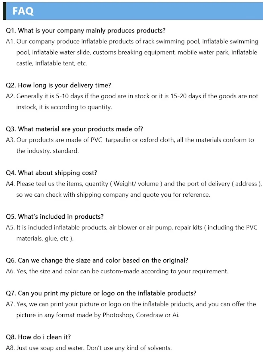 1. How to pay for orders of inflatable slides, inflatable water slides and other inflatables products?