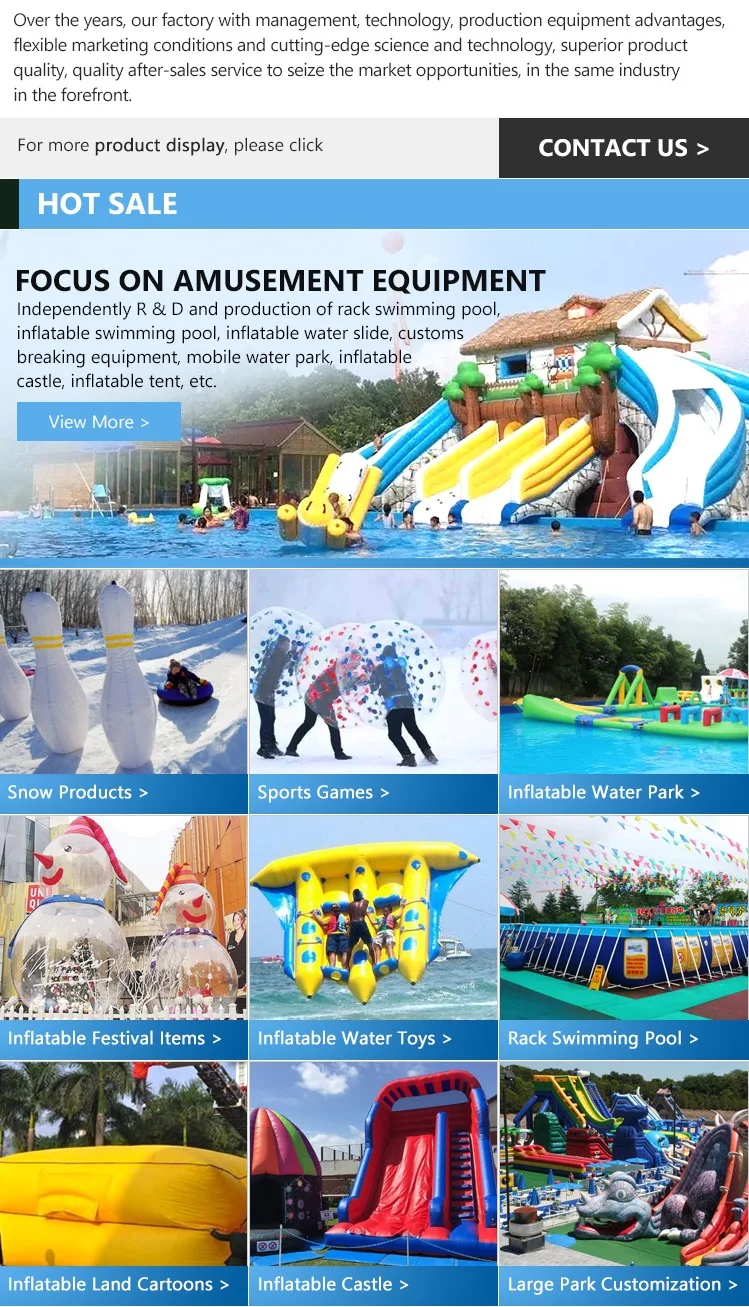 Give us an idea, we can offer the design of inflatable games like inflatable slide, inflatable water slides or amusement parks, activities for customers' project.