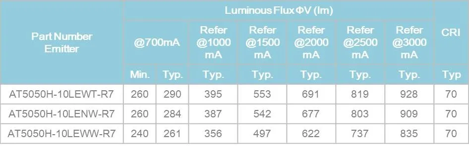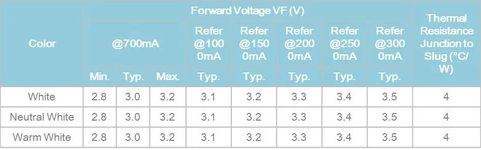 Optical Characteristics at 700mA, TJ= 25°C