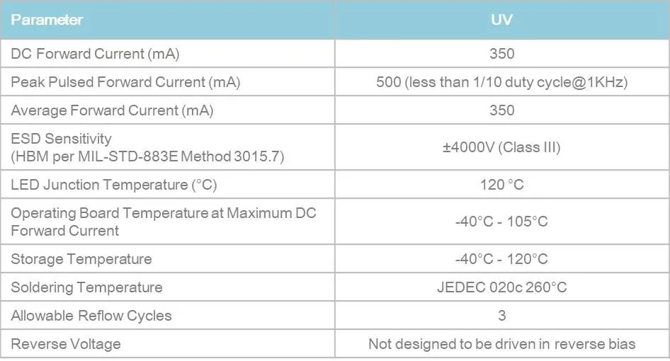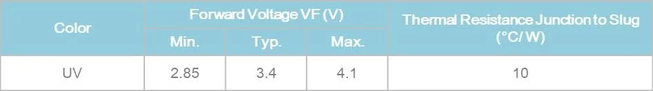 3045 UV LED qualifies as the JEDEC Level 1 MSL sensitivity level