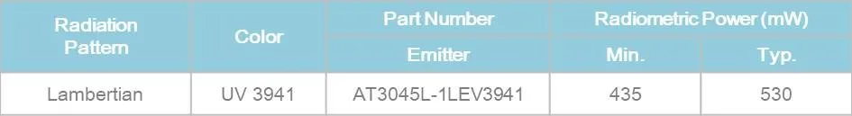 3045 UV LED is designed with All Brite own Patents and using copper leadframe,