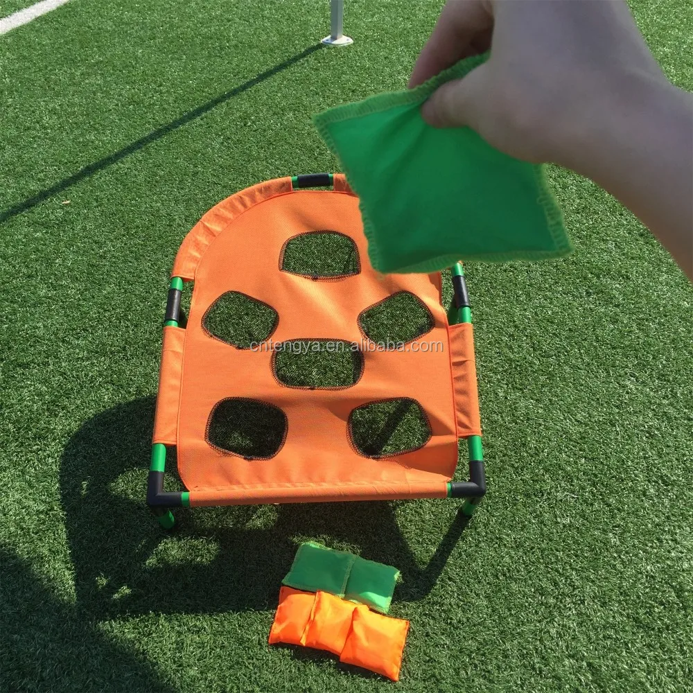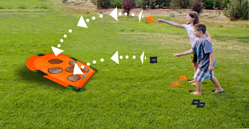 A bag put on the board=1 point. A bag put in the hole=3points.