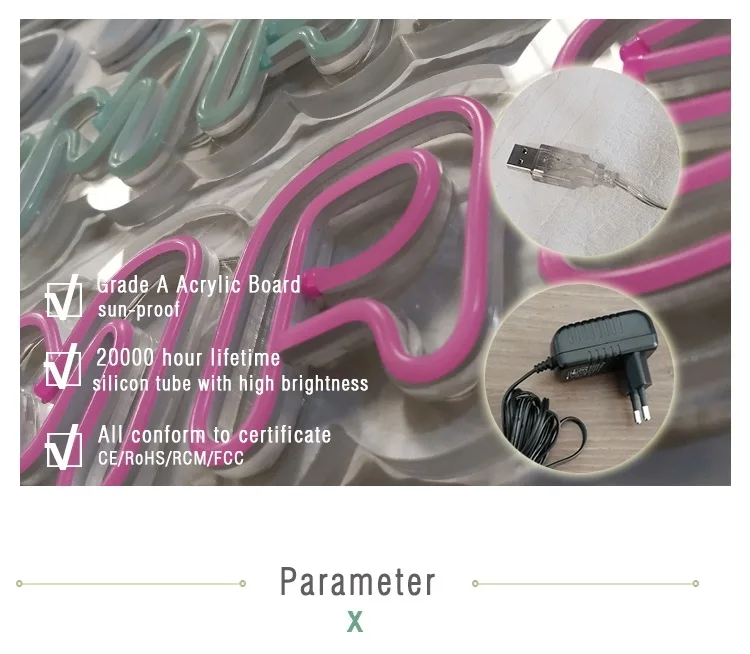 Name | Custom LED Neon Sign | Material | acrylic board, flexible neon tube, 12V adaptor or 5V USB |