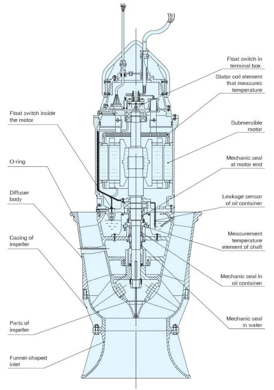 Vertical submersible axial and mixed flow propeller pump
