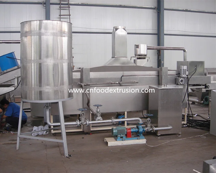 1. This equipment is made up of feeding system, extruding system, cutting system, heating system, driving system, cooling system, usually fit for frying food.