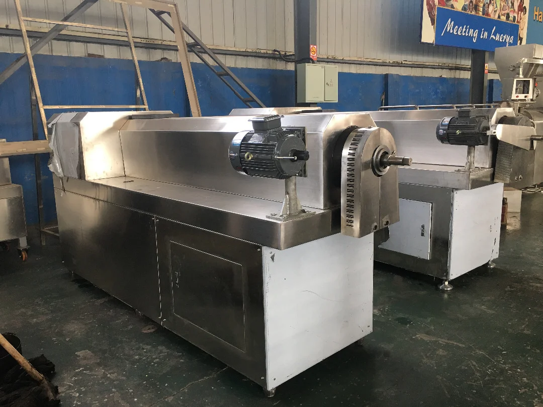 1. Pre-cooking function: When raw materials use wheat flour, potato starch, corn starch, more easy to cooking by single screw extruder with single screw pre-cooking machine. So the flow should be pre-cooked first and then put into this extruder for shaped.