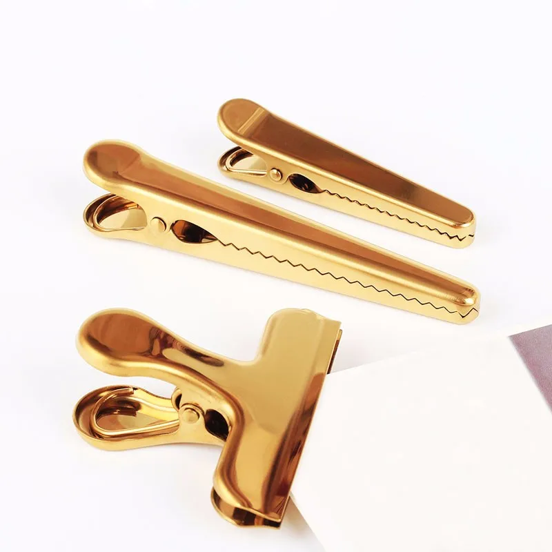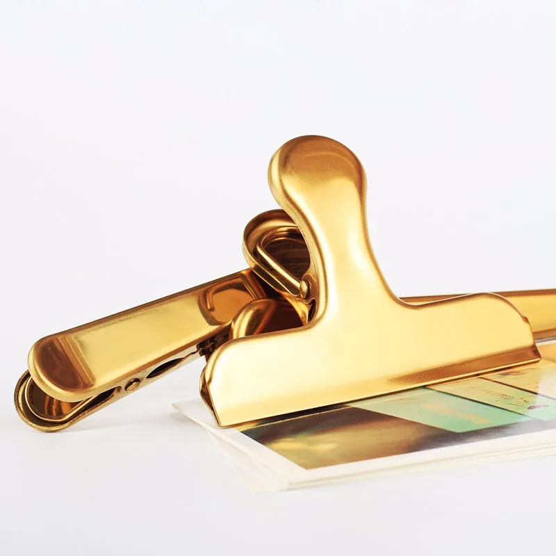 The Brass color Strong clamps Great heavy duty bulldog paper clip to organize paperwork necessities office is made of steel. Features with bulldog shape with heavy spring. It can hold quite a bit of weight. They hold extremely well and are of quality metal material. Custom color and logo are welcome. They are great items as souvenir, promotional gifts, paper clip, billfold and also the best choice of presenting gifts.