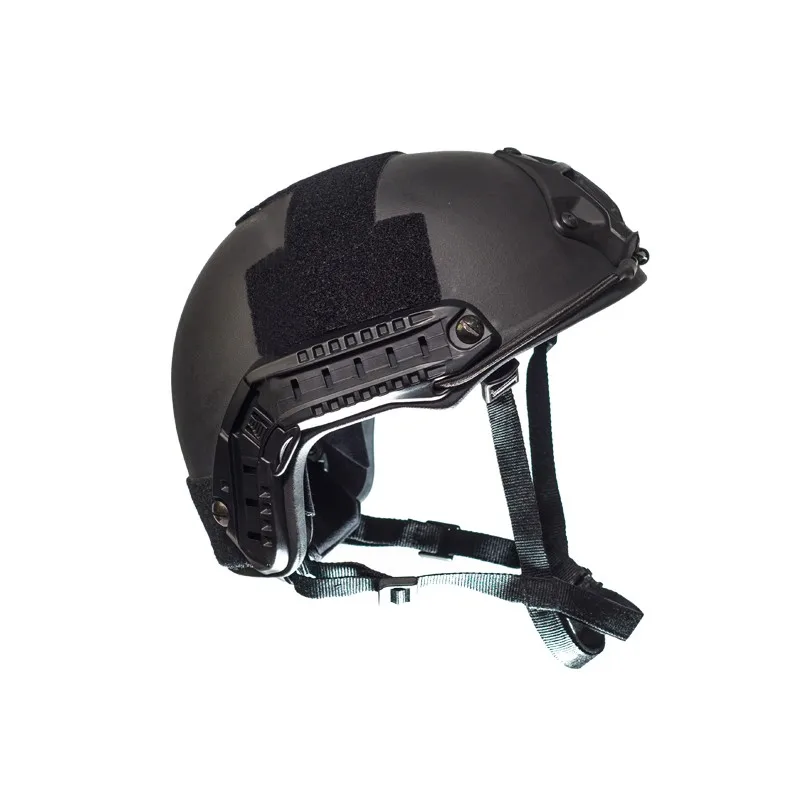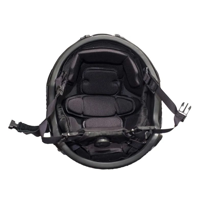 This helmet shell adopts the advanced spraying process with whole sealing which avoid the glue failure from the effect of temperature and humidity to protect the helmet shell from flaking after collisions. This FAST bulletproof helmet is specialized designed for Special Forces. The bracket in the front of helmet is for mounting night-vision goggles, and the side rails are loadable for tactical lighting devices and video cameras .etc, ID card or other marks can be attached on the shell by magic tape. This Helmet uses the HEAD - LOC suspension technology, interior is equipped with lightweight, impact resistant, ventilated EPP cushion (EPP cushion is composed of anti-shock and memory sponge layer), and this EPP cushion would not be influenced by environmental temperature, altitude and humidity change .The helmet has OCC - DIAL adjustable headband, OCC - DIAL uses mechanical optimization design with a knob to adjust, can tighten the HEAD space just by twisting the knob gently, keep the stability of the helmet. Users would not feel the loosing. At the same time COMTAC/SORDIN and other communication headsets can be placed inside the helmet.
