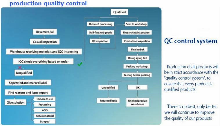 6. For the goods you ordered,we will pay attention to the appearance and performance, At each link in the chain, have a person responsible for checking ,so you can rest assured