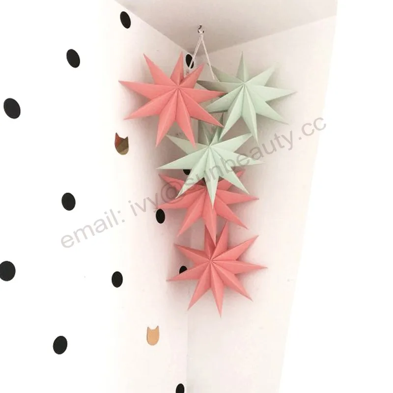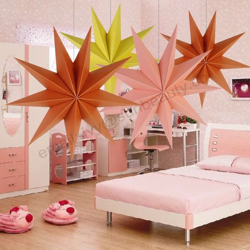 Available in many colors and patterns, our unique paper stars have been seen hung on walls and ceilings in shows, it makes a beautiful display or decoration in any room in the home, shopping malls, stages decorations.