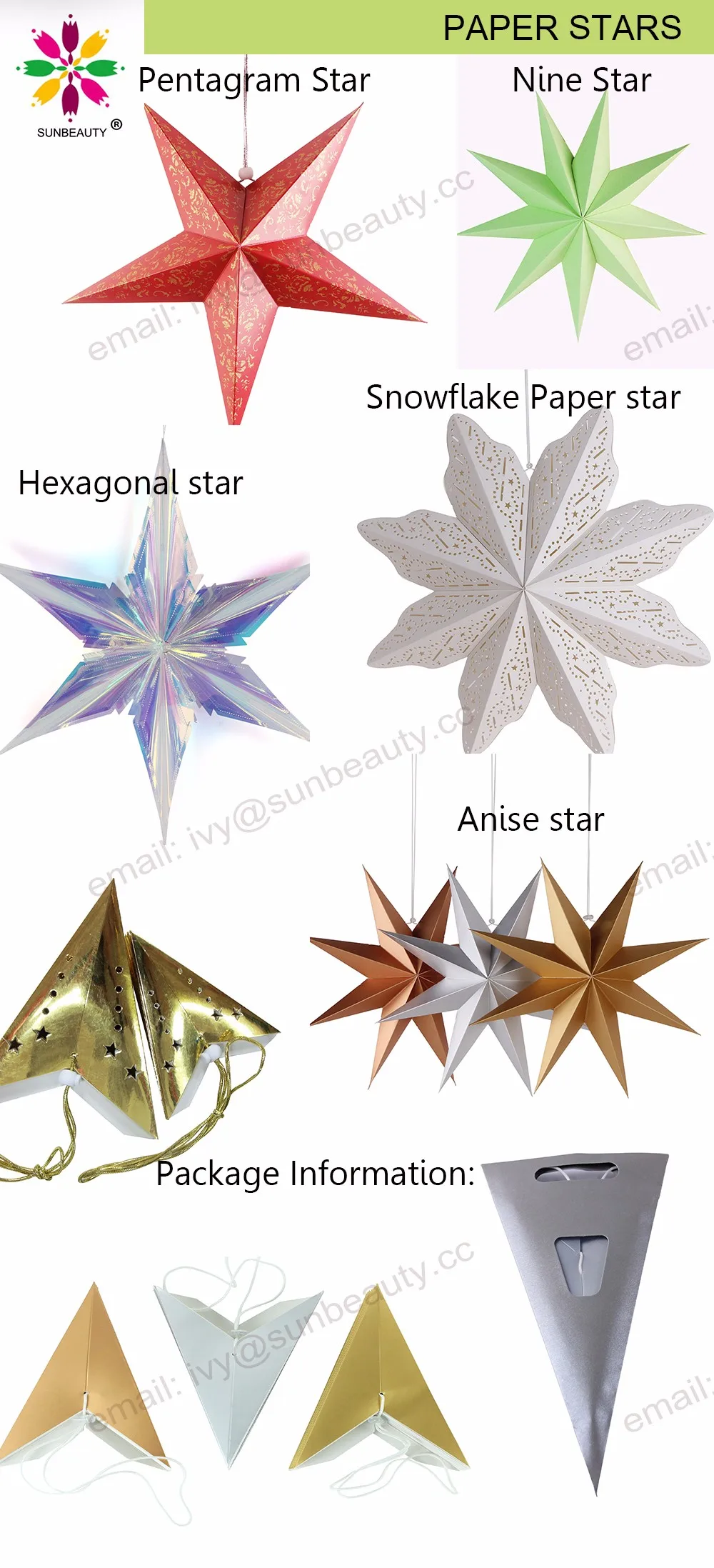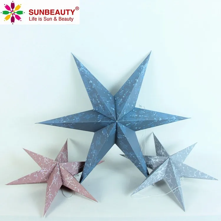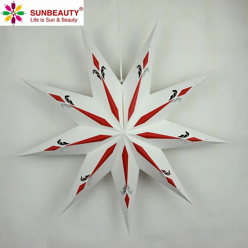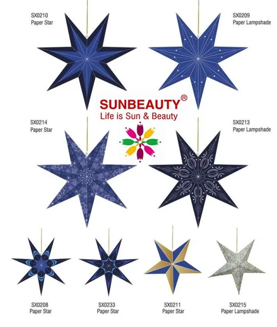 Hanging Nie Pointed Paper Star, Sunbeauty's hand-crafted hanging Paper Star are beautiful as a home decor accessory or as an Wedding Special event New Year Holiday decoration . These star lantern are high-quality - made from high quality paper card and punched with a special star design.