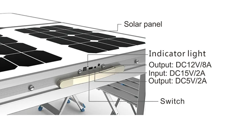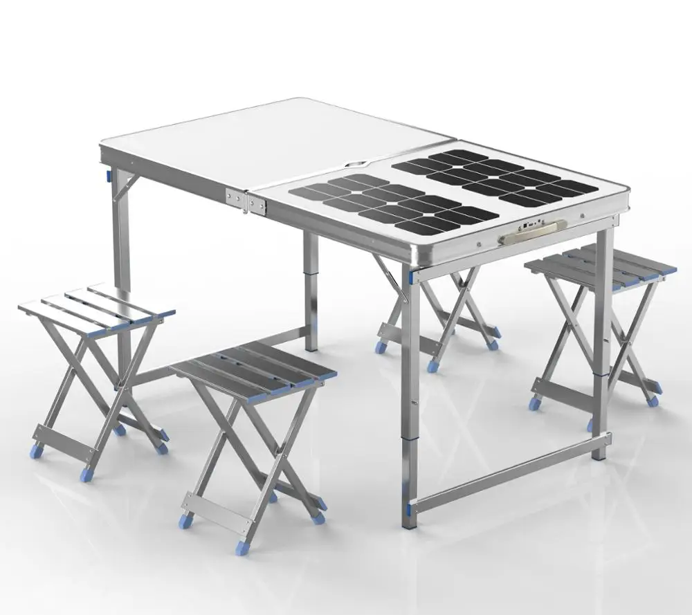 3.Our solar table can satisfy your needed of 12V electrical power supply and 5V digital products charging requirements.Such as:supply power for 12V LED lights,fans and speakers,for 5V phone/tablet charging
