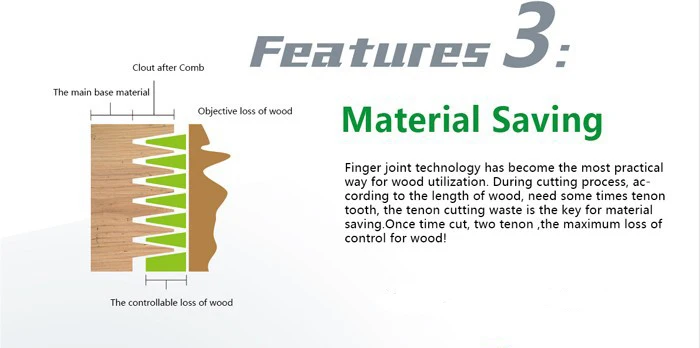 Used for rubber wood timber, bamboo wood timber, imported timber and furniture wood finger jointing, standard finger length 12mm, 9mm, 6mm, suitable for advance imported precision equipment.