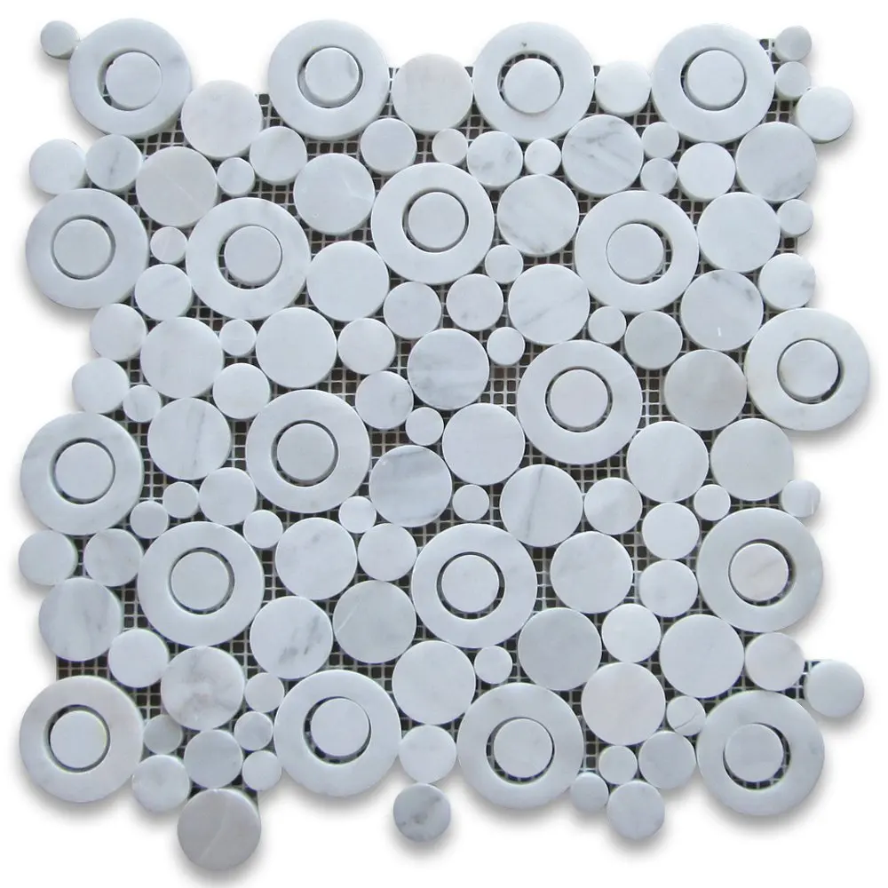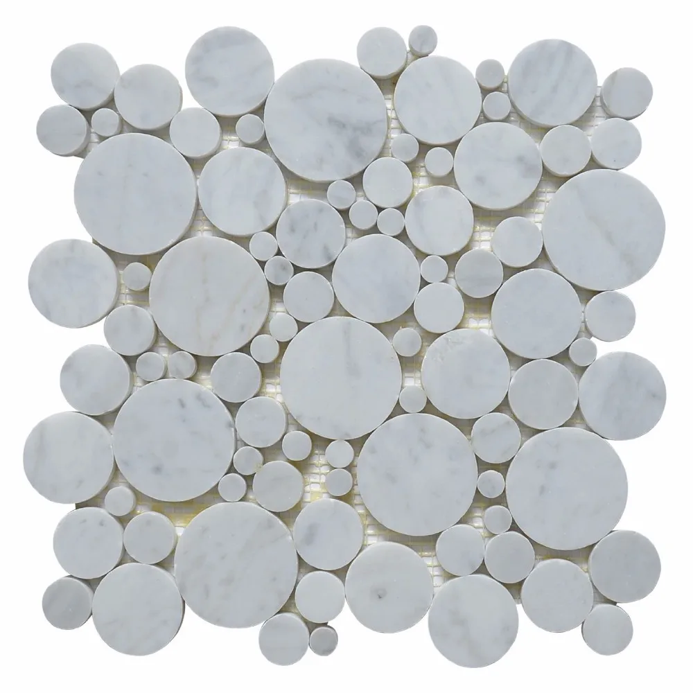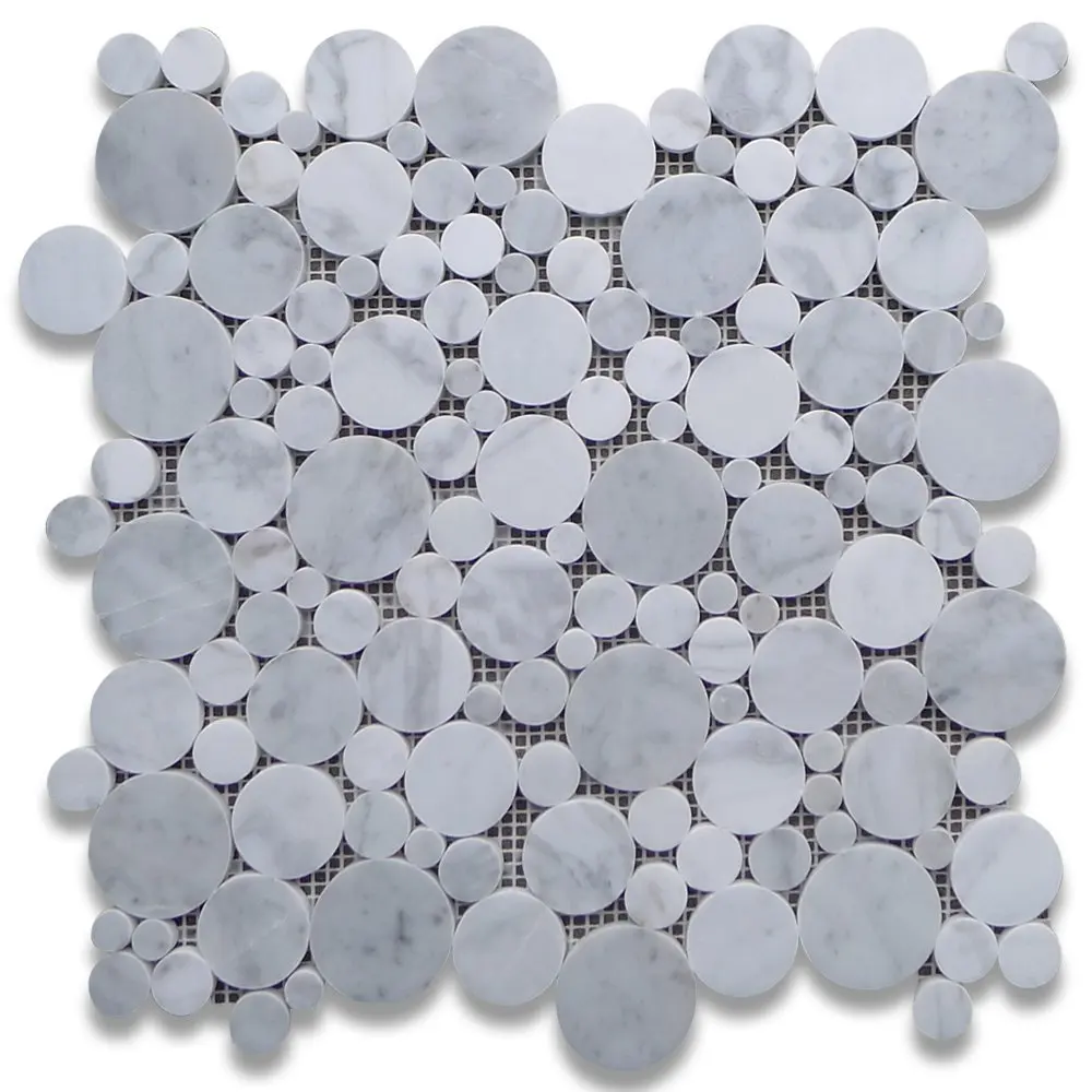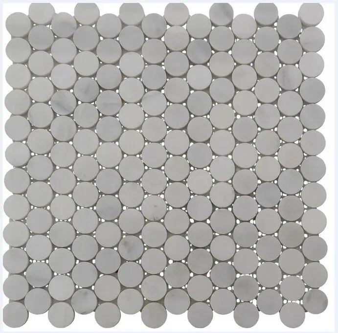 3/4 inch carrara venato honed penny round white marble mosaic tiles