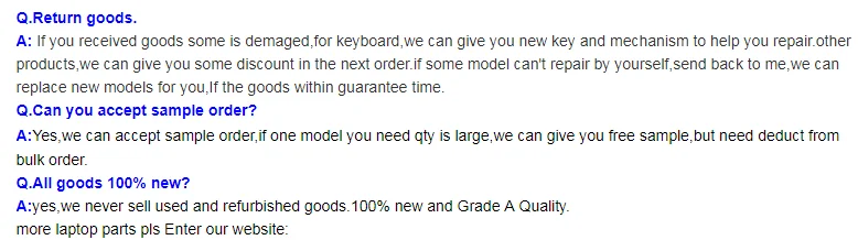 is specialized in Laptop Parts, including Laptop Keyboard, Adapter, Battery,LCD Hinger, LCD Cover,LCD Cables, Converter, DC Jack, USB Jack,CPU Fans, Speakers.DC/AC cables.HDD Caddy for many years. If you have any need or questions, please feel free to contact us