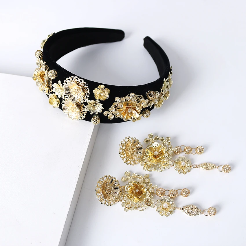 Gold leaf style women accessories hair for wedding elastic head band