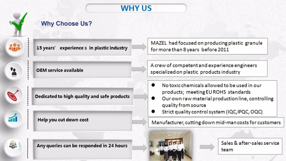 1. experienced in plastic products,able to adjusting formulation flexibly according to different product;