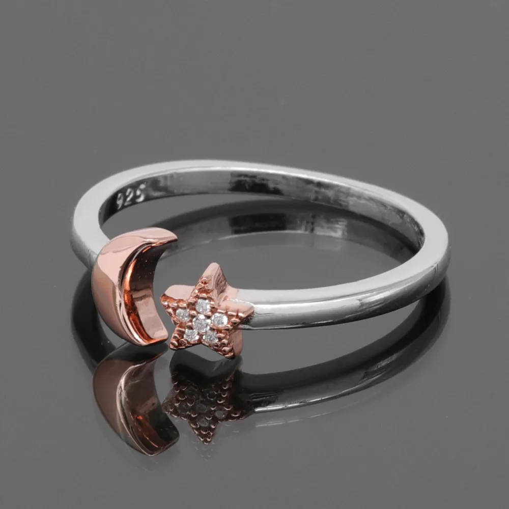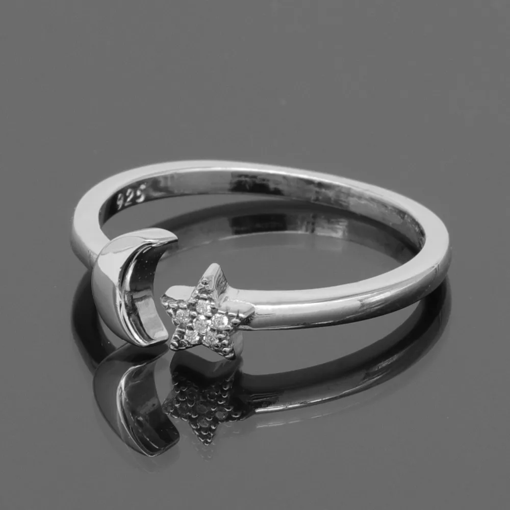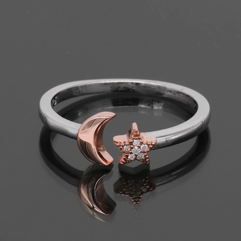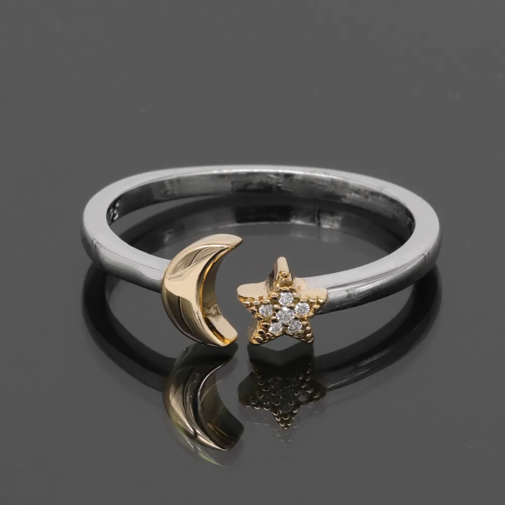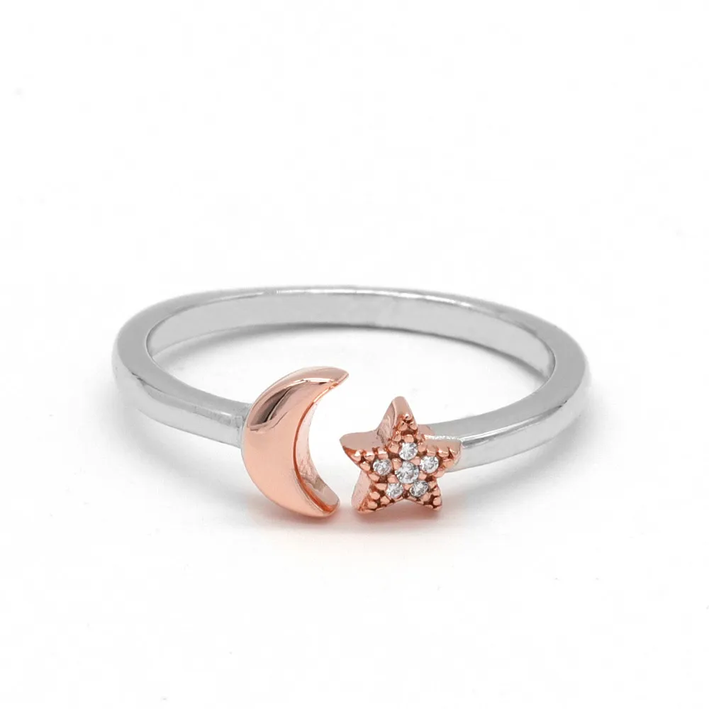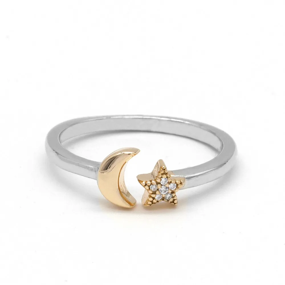 Subtle by design, the sterling silver star and moon open ring is a timeless accessories. Feature rhodium, rose gold or gold plated to enhance the brightness, perfect for gift.