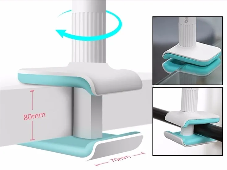 The height of the fixed section can be adjusted from 0 to 3.14 inch(8cm). It is compatible with most tables and desks of different thicknesses.