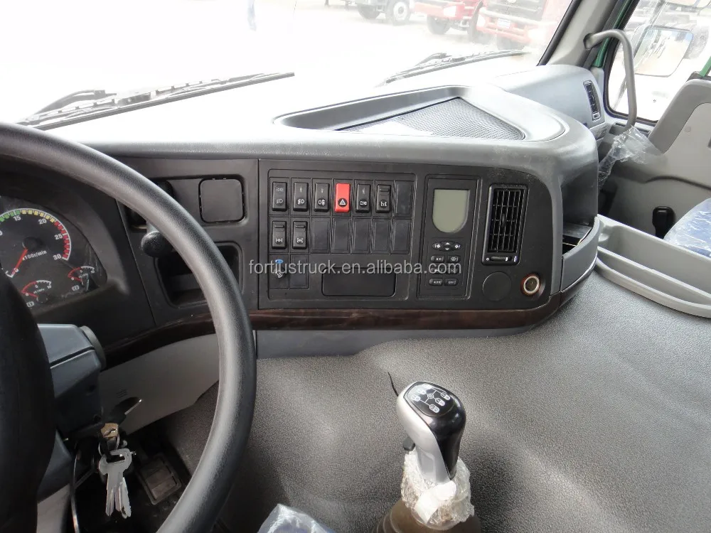 Cab | HW79 high roof cabin, with two beds, air-conditioner, 4-point full-floating air suspension, adjustable steering wheel with various heights and angles,air suspension seat. Safety belts, outside sun visor etc |