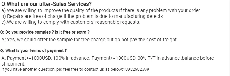 | Payment Terms | T/T,L/C at sight,Western Union,Alibaba Trade Assurance; |