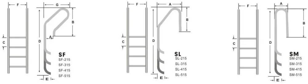 Pool Ladder with polished Stainless Steel pipe (Diameter : 42mm), this new ladder is specially designed for overflow pool with attractive appearance. Easily installed with anchoring or flange fixtures. Rails and steps in both AISI-304 and AISI-316 available.