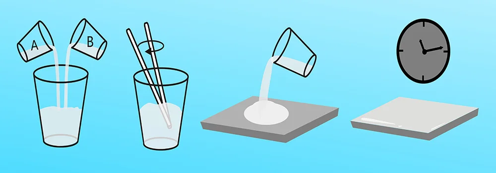1.Weigh A and B glue according to the given weight ratio into the prepared cleaned container, fully mixed the mixture again the container wall by clockwise, place it along for 3 to 5 minutes, and then it can be used.