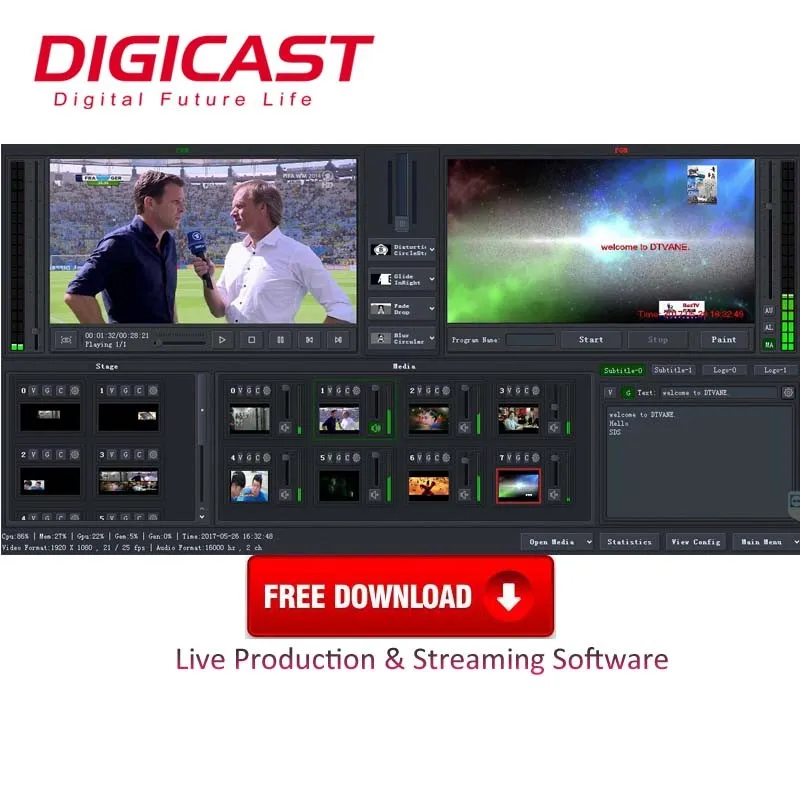 Including 8K video sources, LIVE mixing and switching, publish locally, LIVE streaming, recording and produce