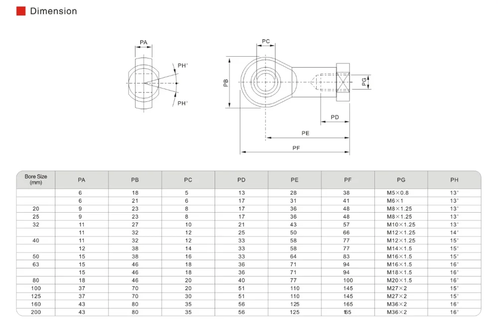 | Port Size | M5*0.8 | M6*1 | M8*1.25 | M10*1.25 | M12*1.5 | M14*1.5 | M16*1.5 | M18*1.5 | M20*1.5 | M27*2.0 | M36*2.0 |