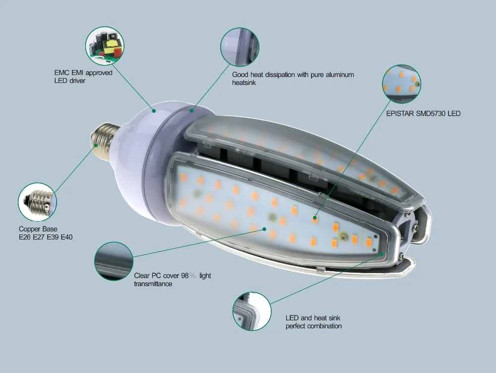 VOLUN led corn bulbs can be as high as 130-140lm/w, light intensity and light efficiency are far better than general led corn bulbs. They can also replace led high bay light source, which has guaranteed quality and a 3-year warranty.